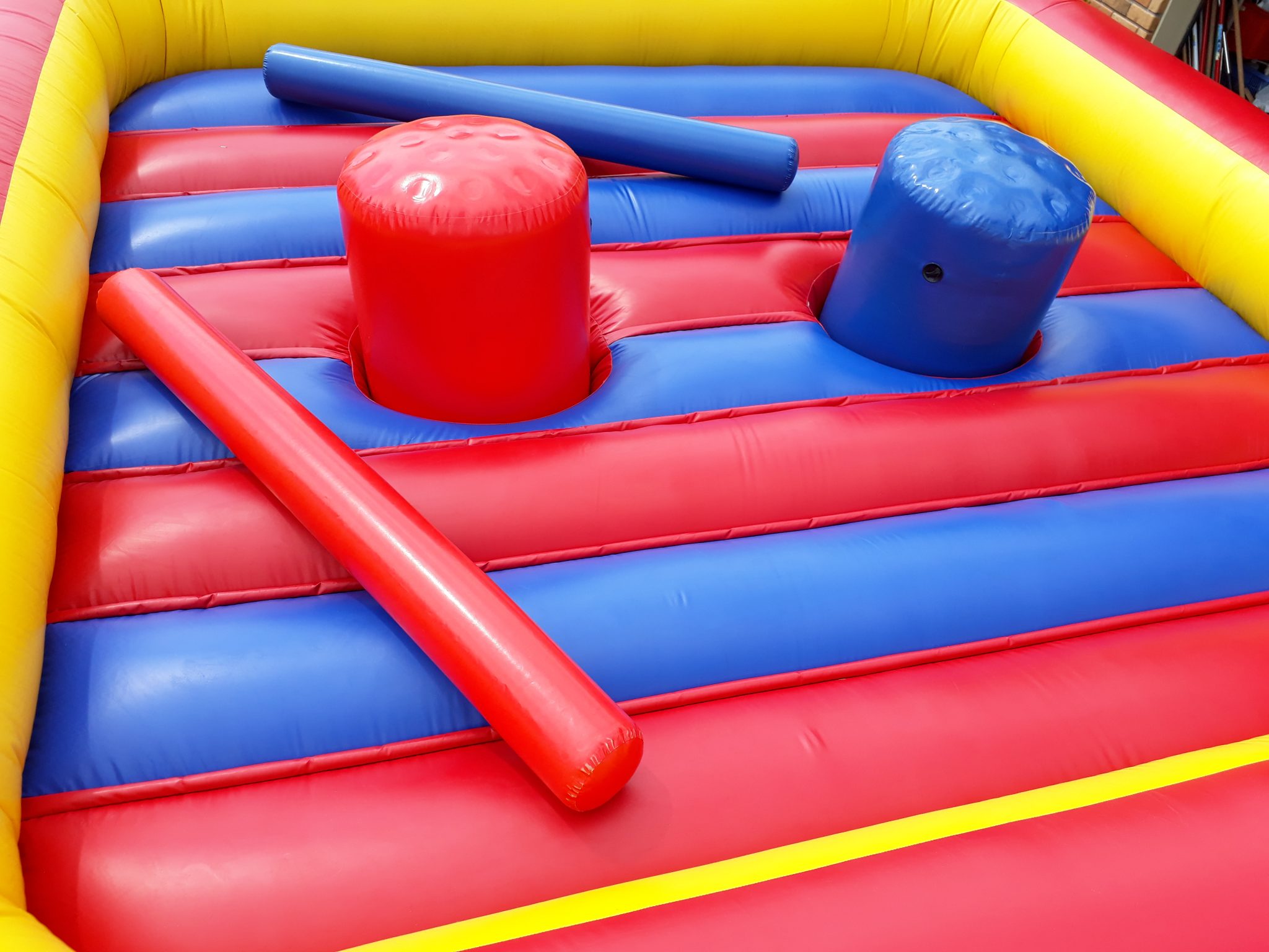 Nice bright red, blue and yellow Jousting Arena that will add heaps of fun and laughter to any adult’s party, event, fundraiser or school gala. We need 6m x 6m for setup.
